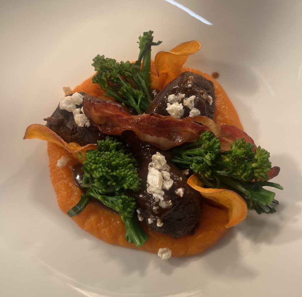 - Technik: Niedrigtemperatur sous-vide, danach glasiert.
