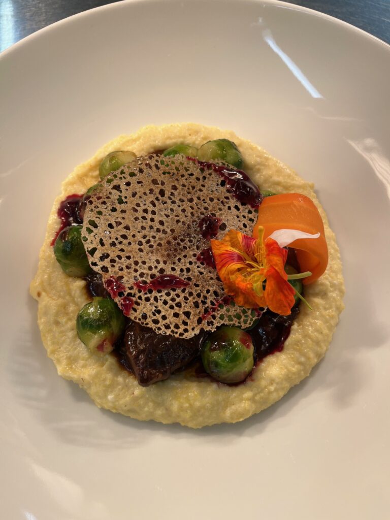 Rinderrippe 48h gegart mit BBQ-Reduktion und Maispüree