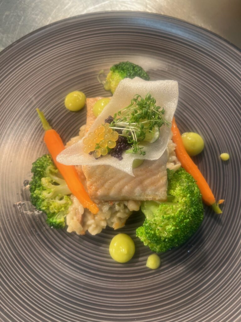 - Beilage: Safranrisotto mit Grana Padano, Gremolata modern interpretiert.