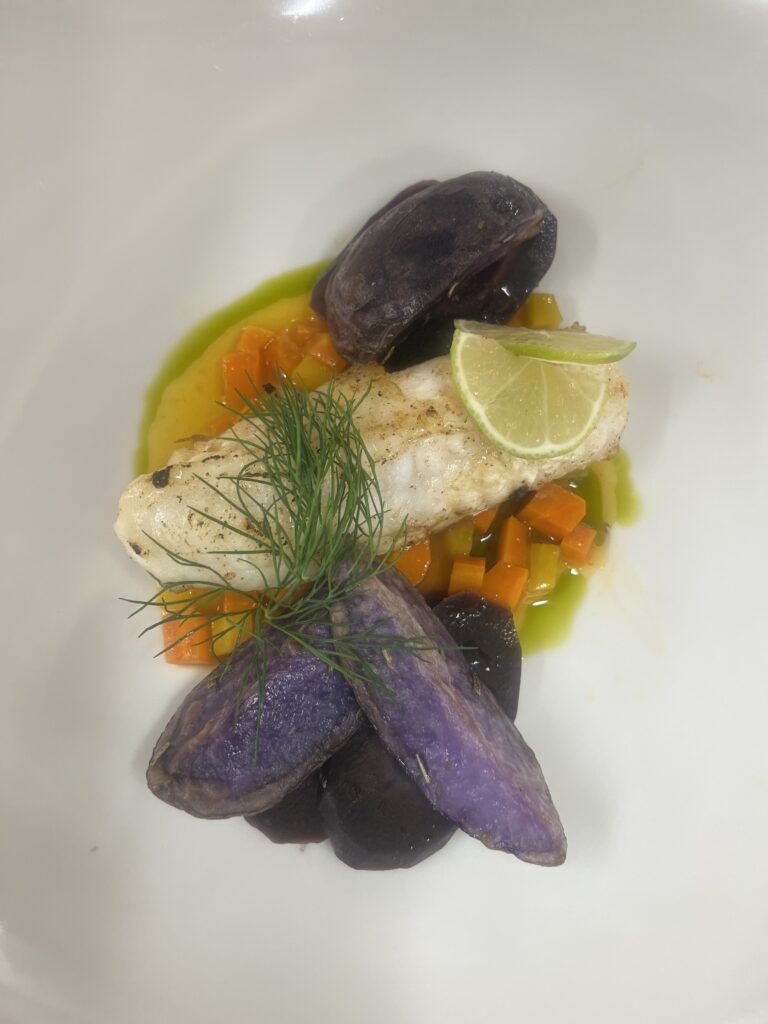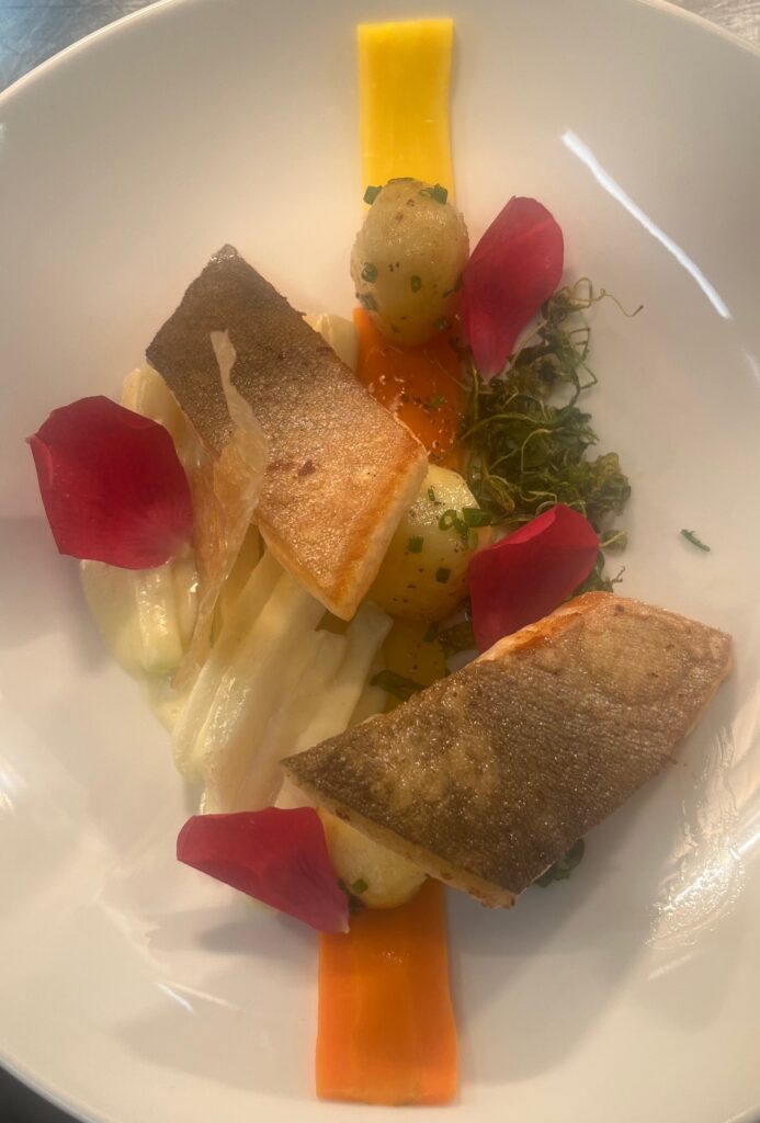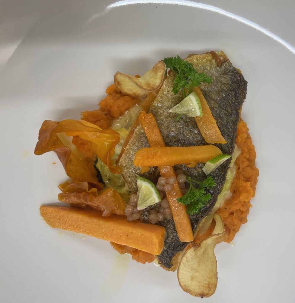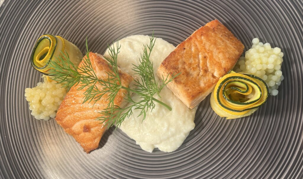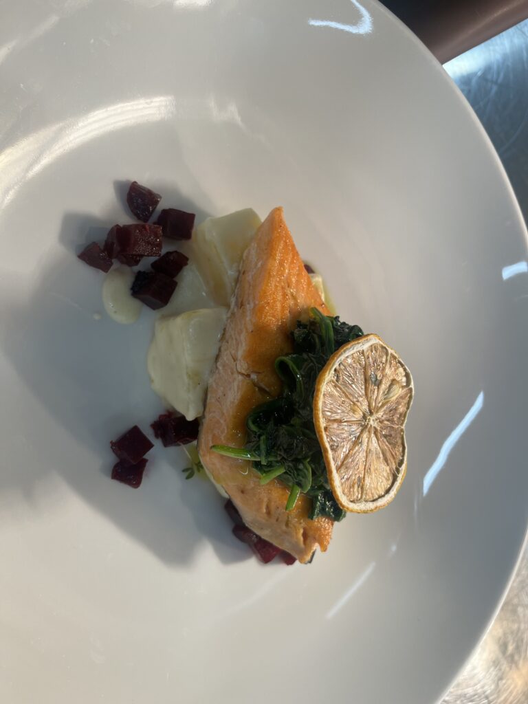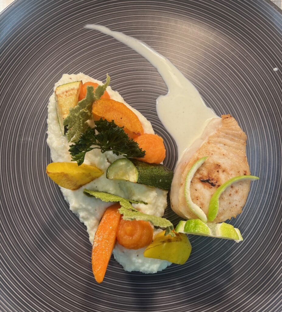 - Präsentation: Fisch auf Püree, Microgreens als Akzent