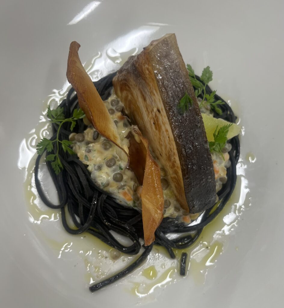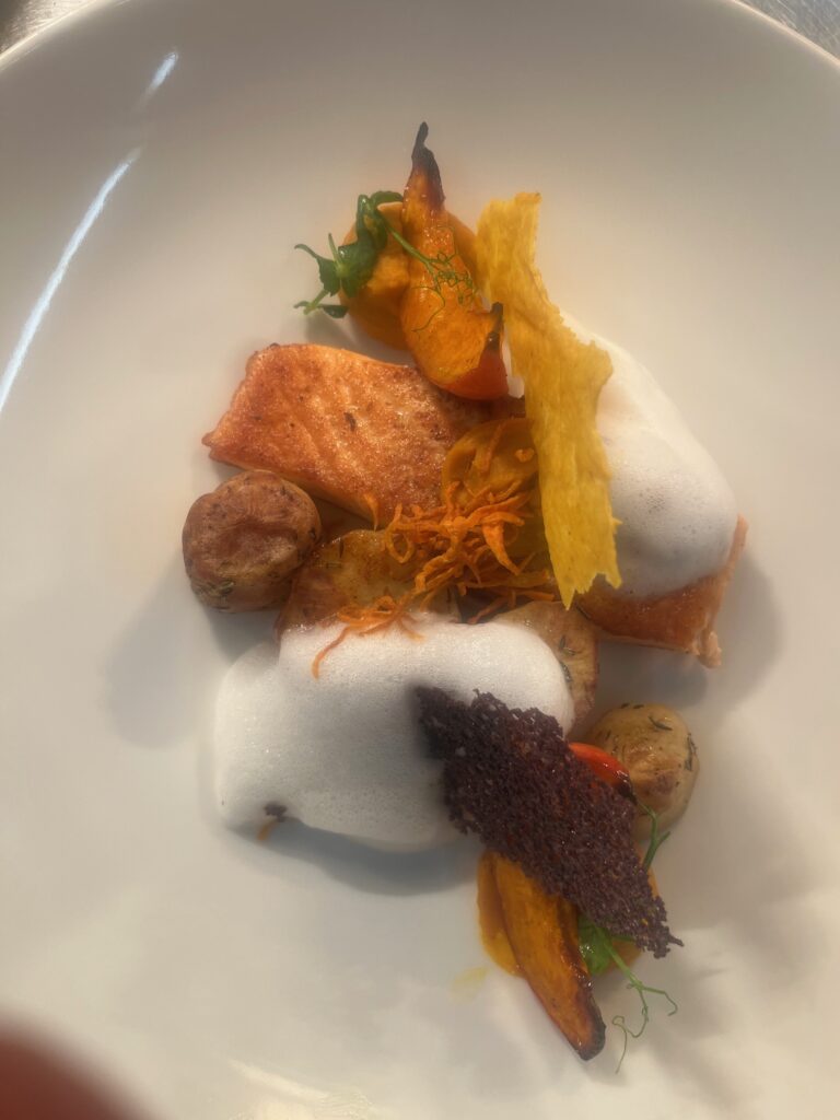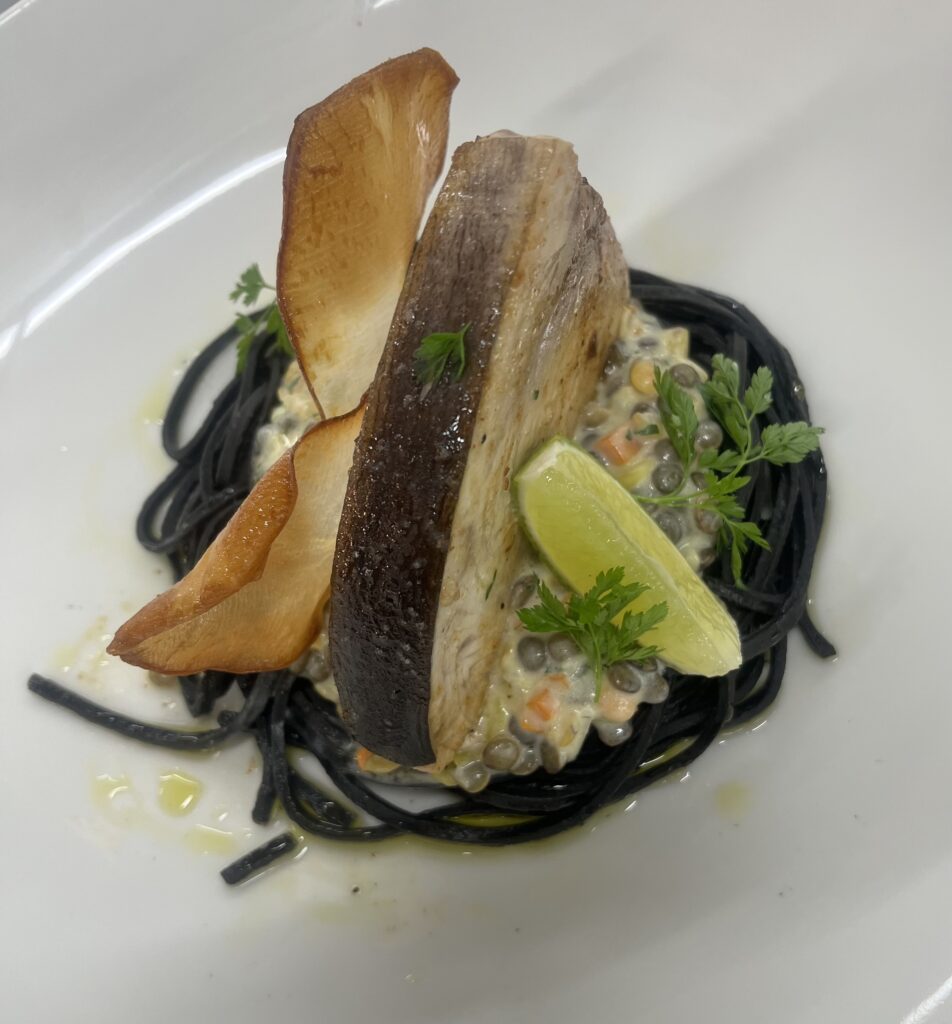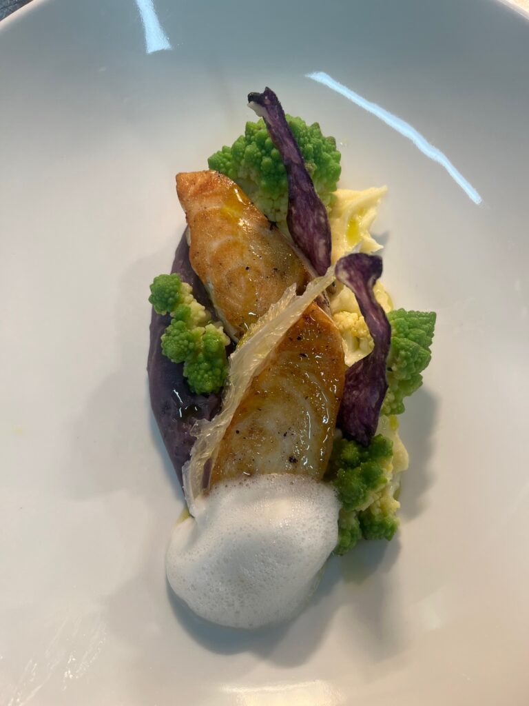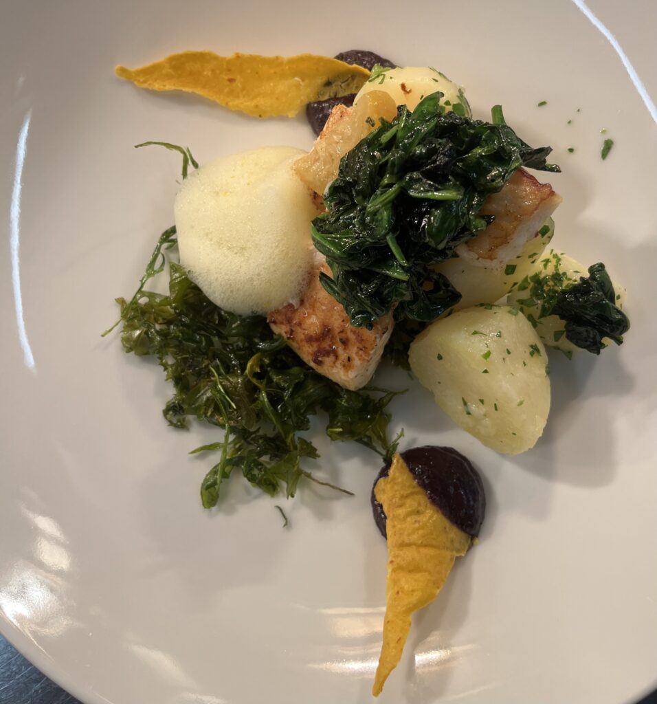 - Präsentation: Fisch auf Püree, Microgreens als Akzent