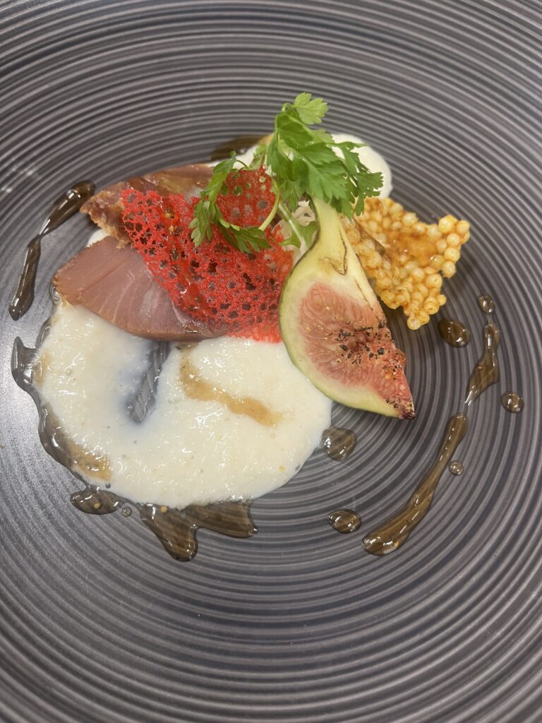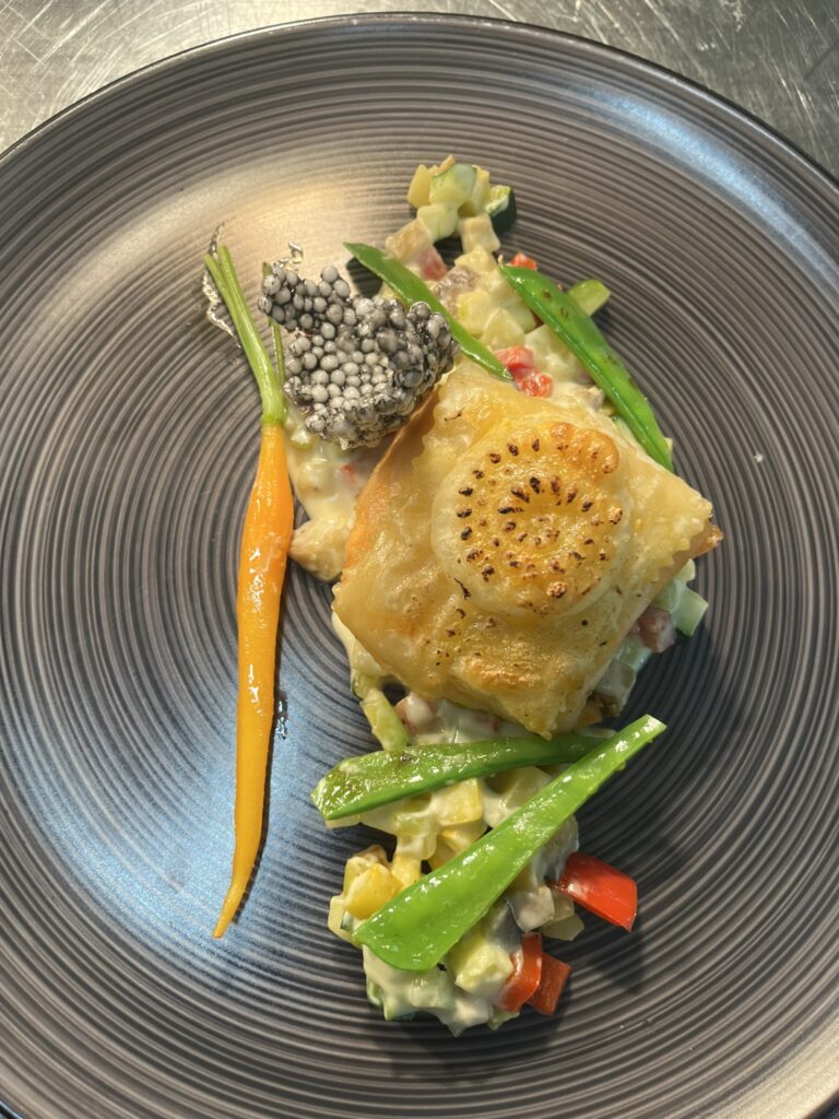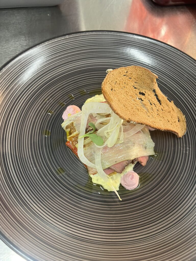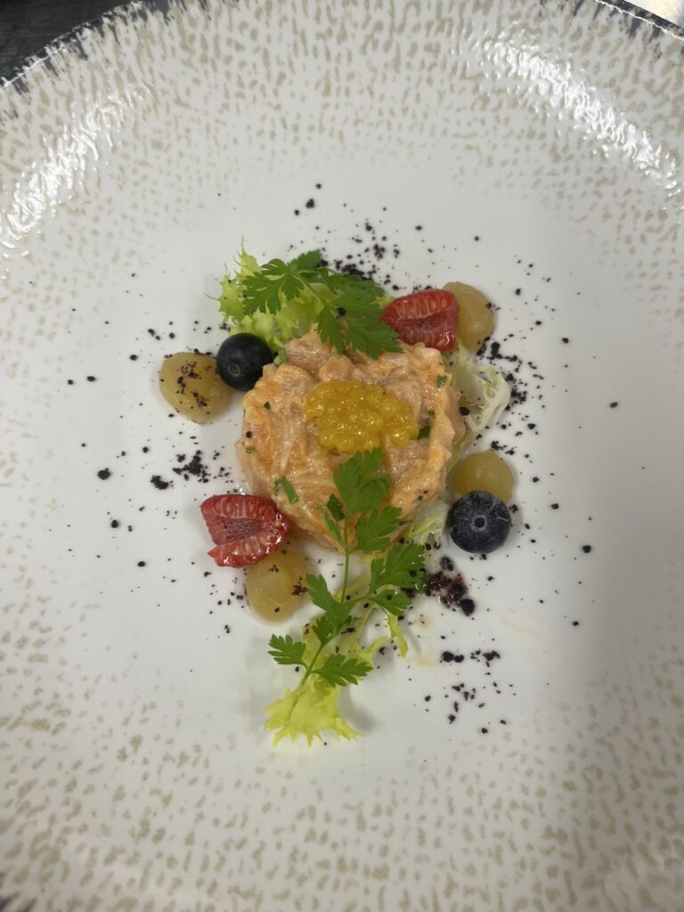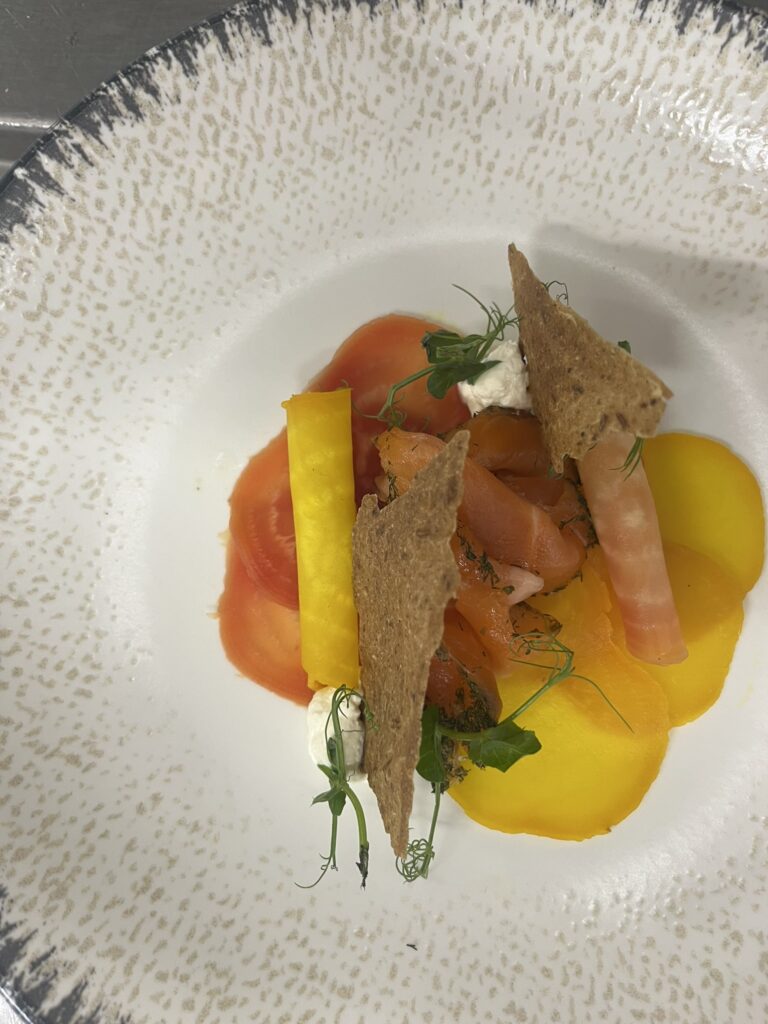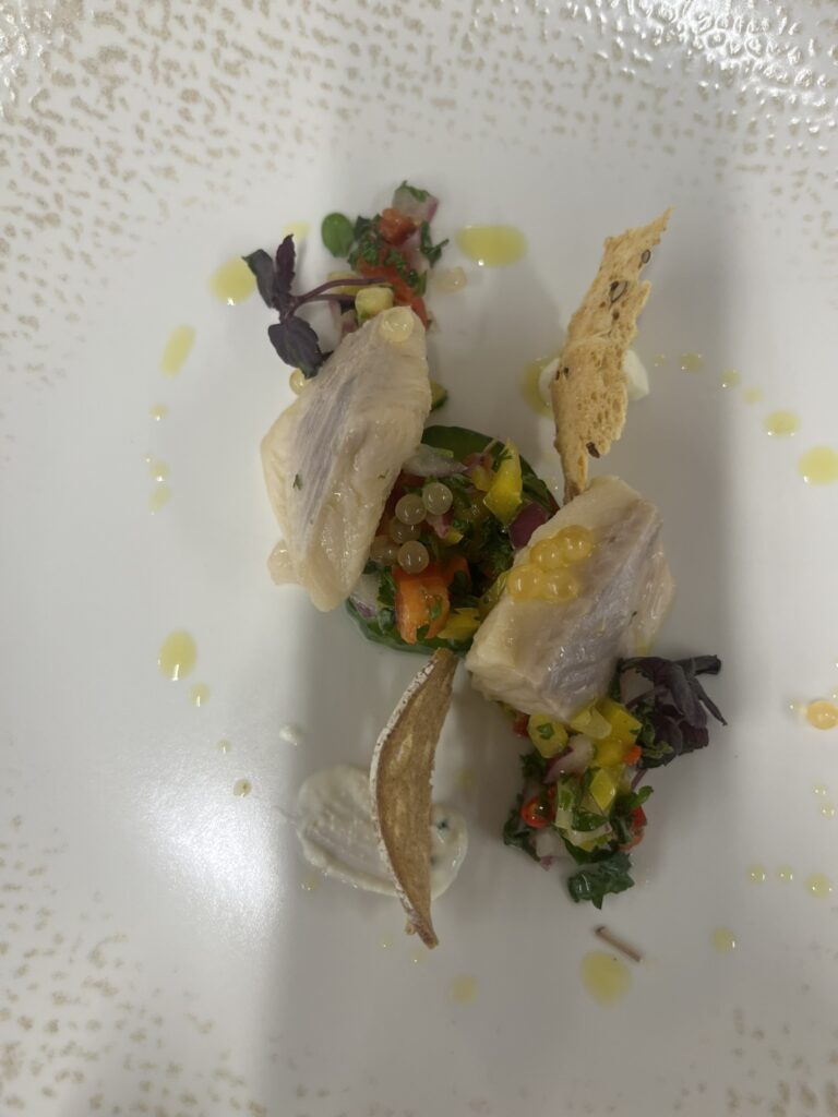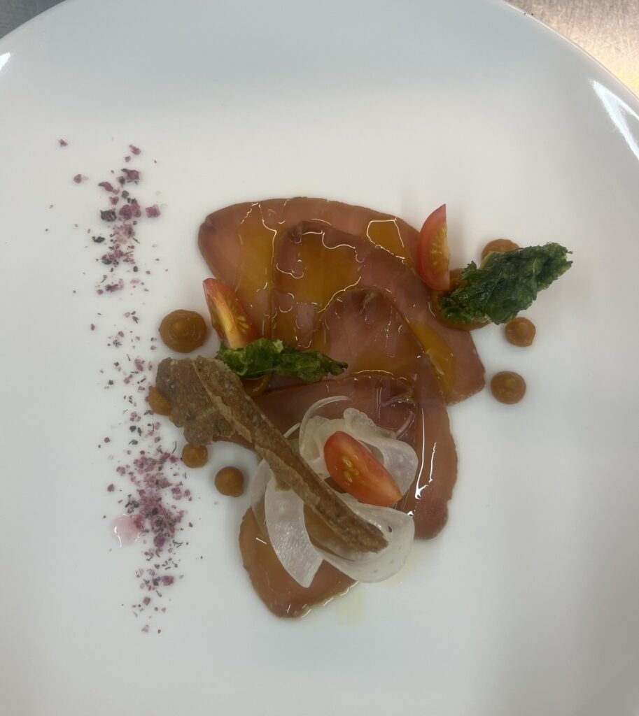 Saibling in Scheiben, Meerrettichcreme darauf.