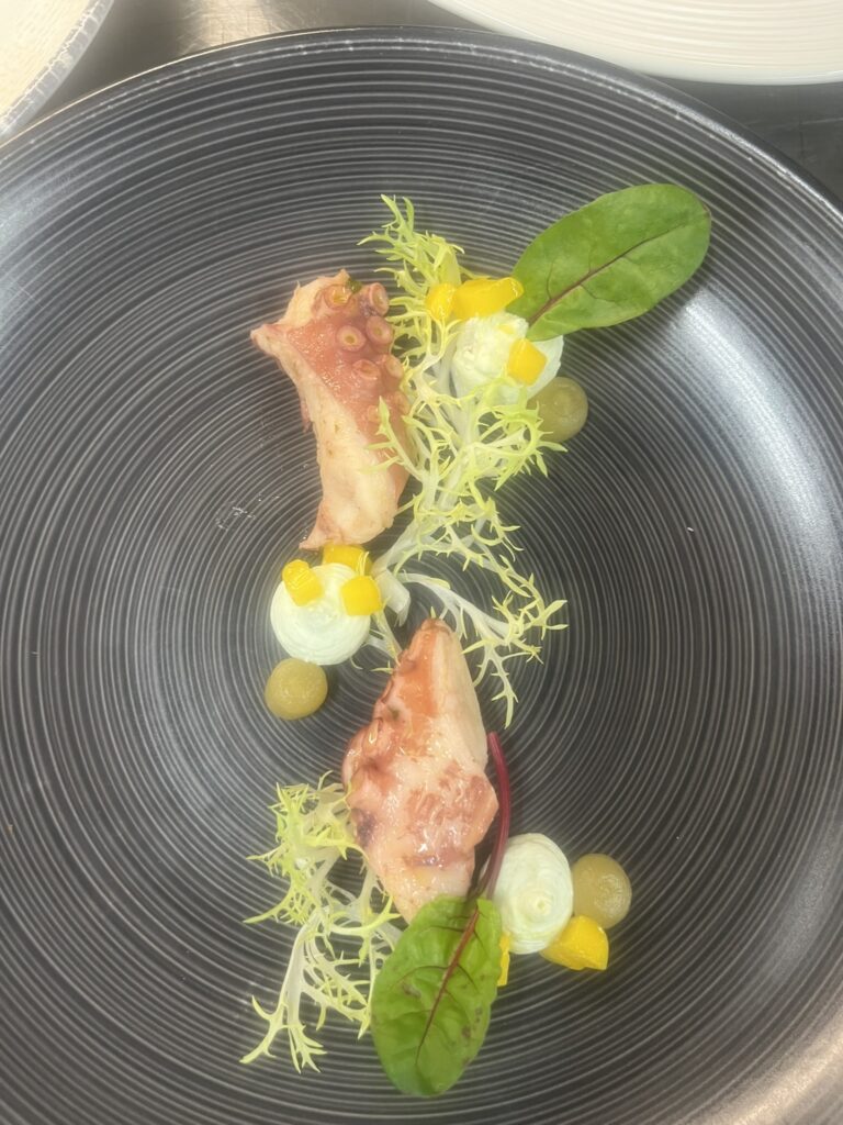 Gekochten Octopus kalt schneiden, Zitronenöl.