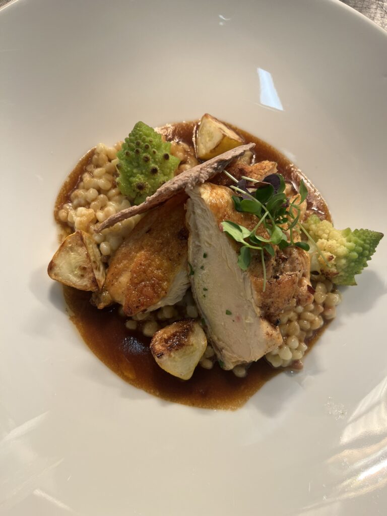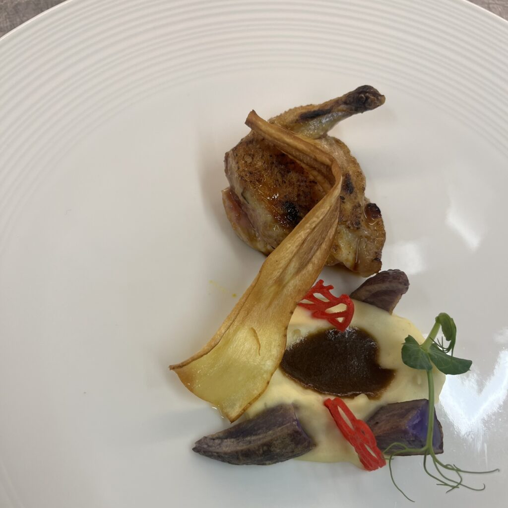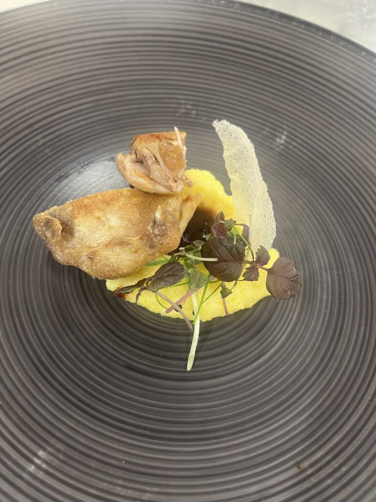 - Perlhuhnbrust auf Kürbiscreme – Beilage: Polenta, glasiertes Gemüse