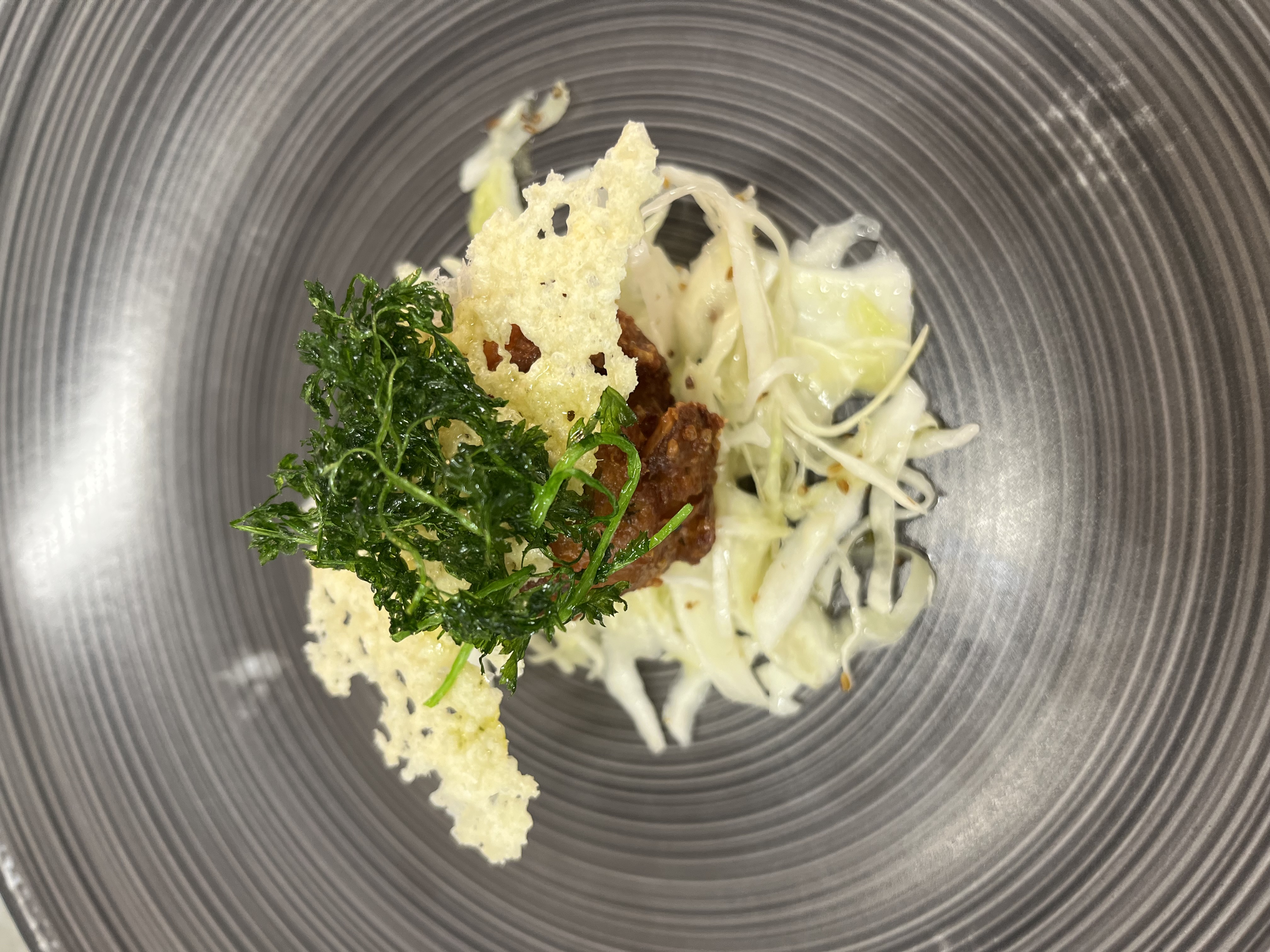 Jackfruit-Ragout mit Curry-Kokos-Sauce – Beilage: Tagliatelle, ZuckerschotenRezept: Ragout zubereiten, warm servieren.