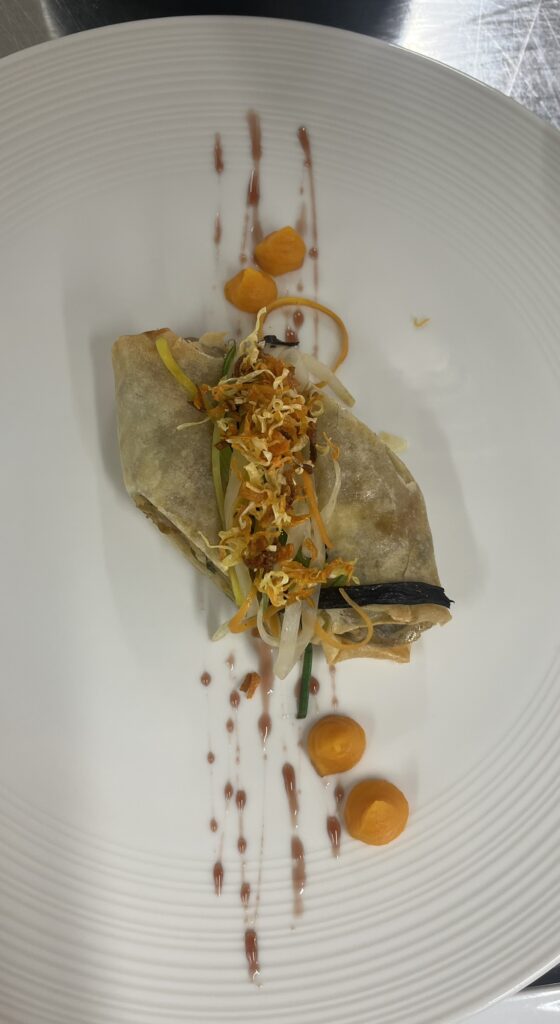 Blätterteigpraline mit Gemüsefüllung – Beilage: Polenta, glasiertes GemüseRezept: Füllen, kurz backen.