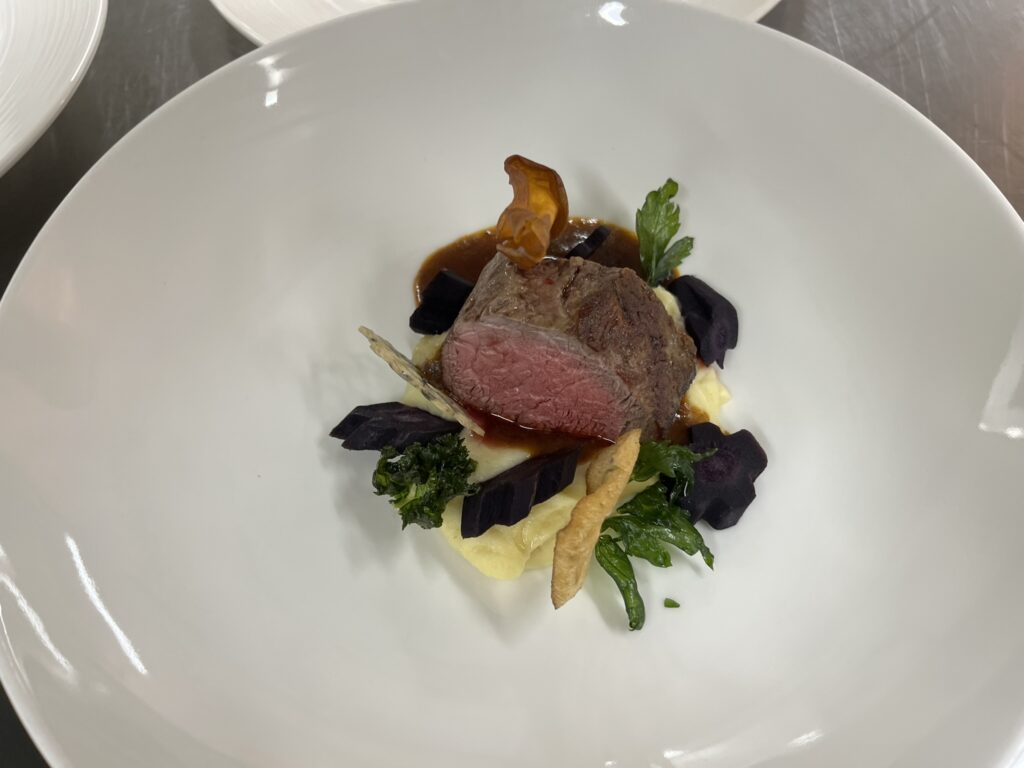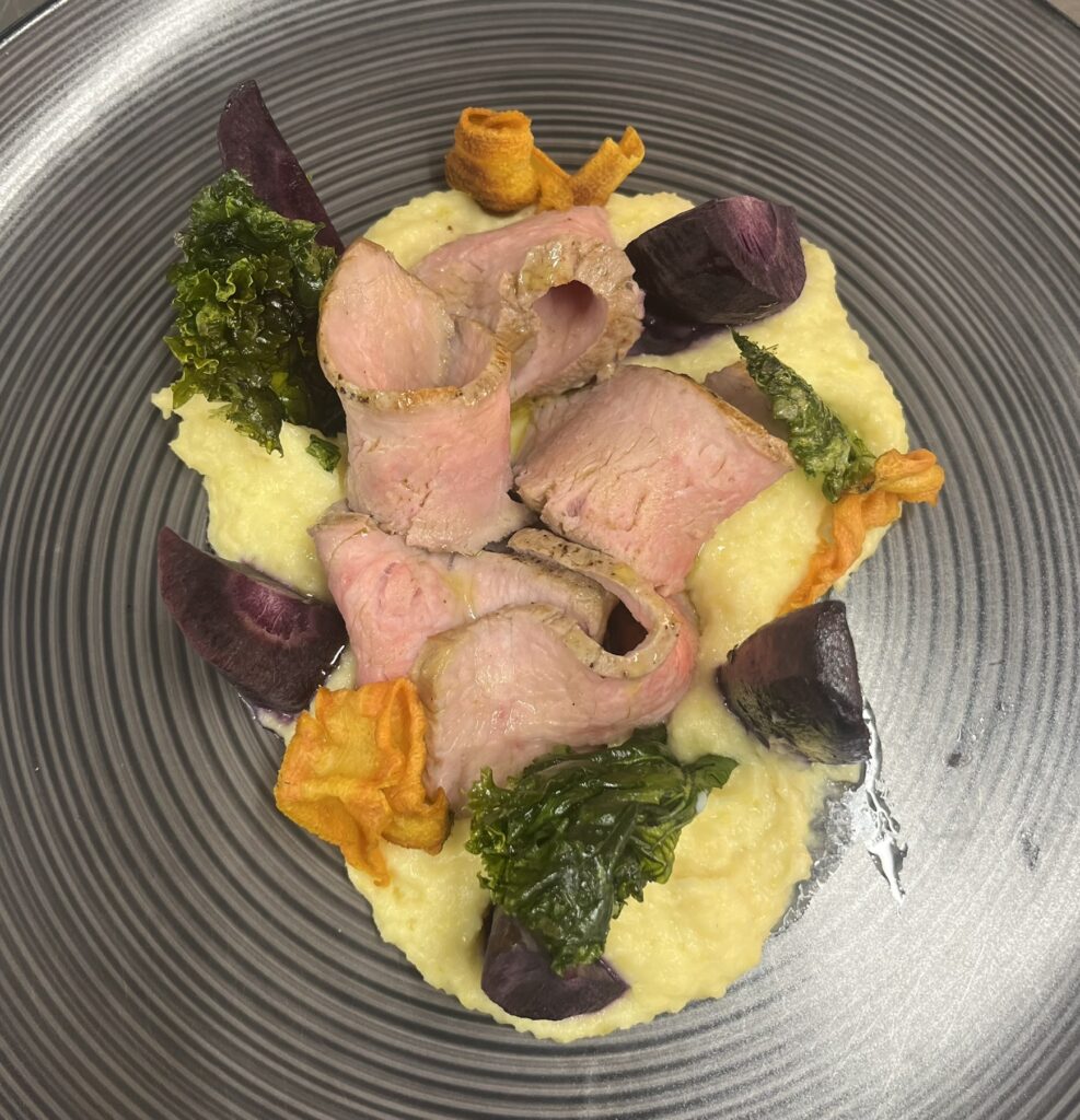 - Hirschrücken | Kartoffelpüree | lila Karotte