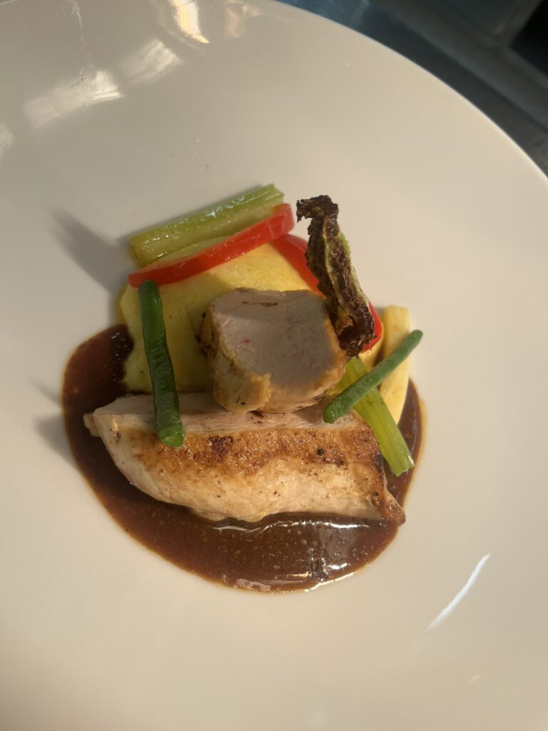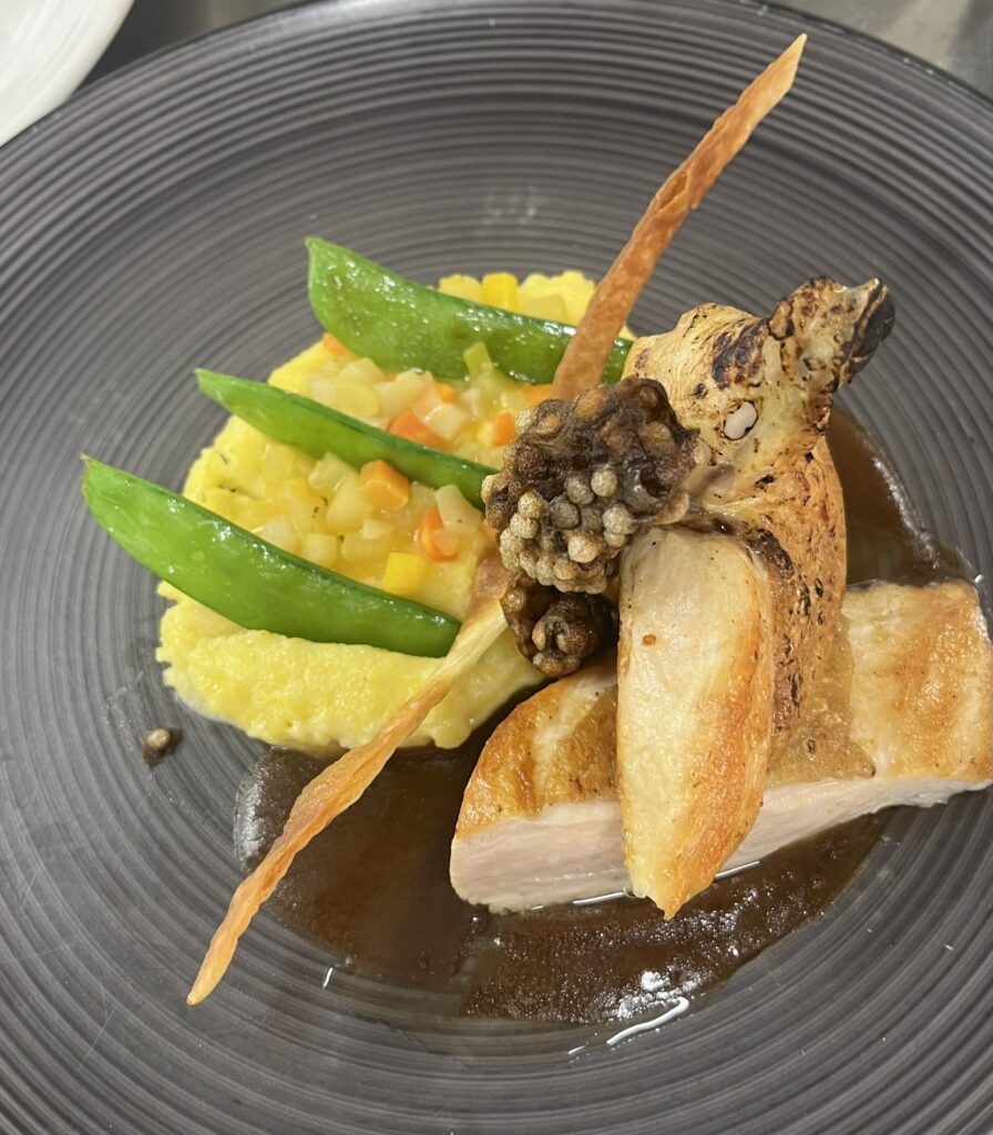 - Hühnerbrust in Trüffelrahm – Beilage: Polenta, glasiertes Gemüse