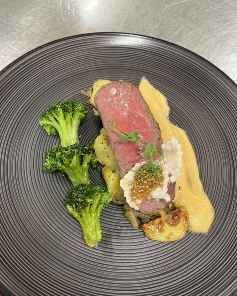 - Rinderfilet mit Trüffelrahm – Beilage: Kartoffelgratin, Butterkarotten