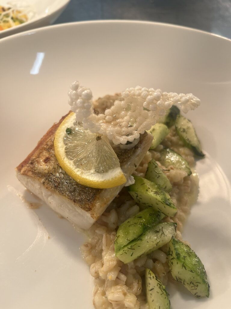 - Scholle confiert – Gerstlrisotto, Sprossenkohl