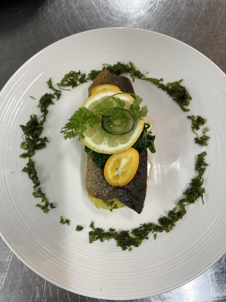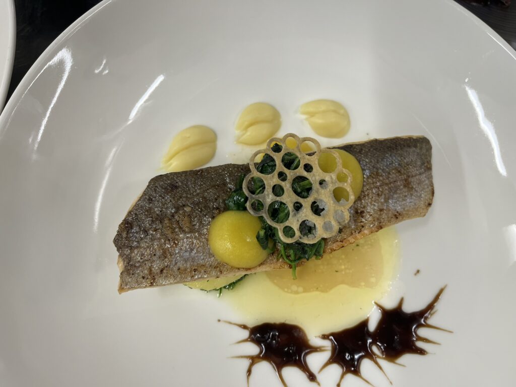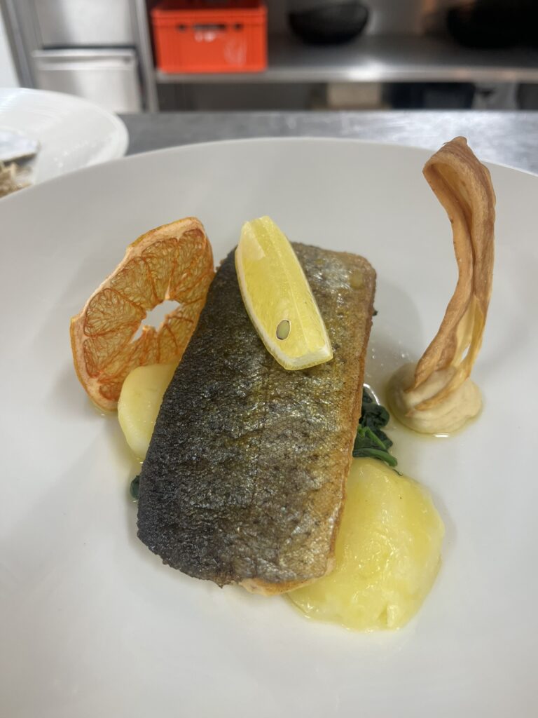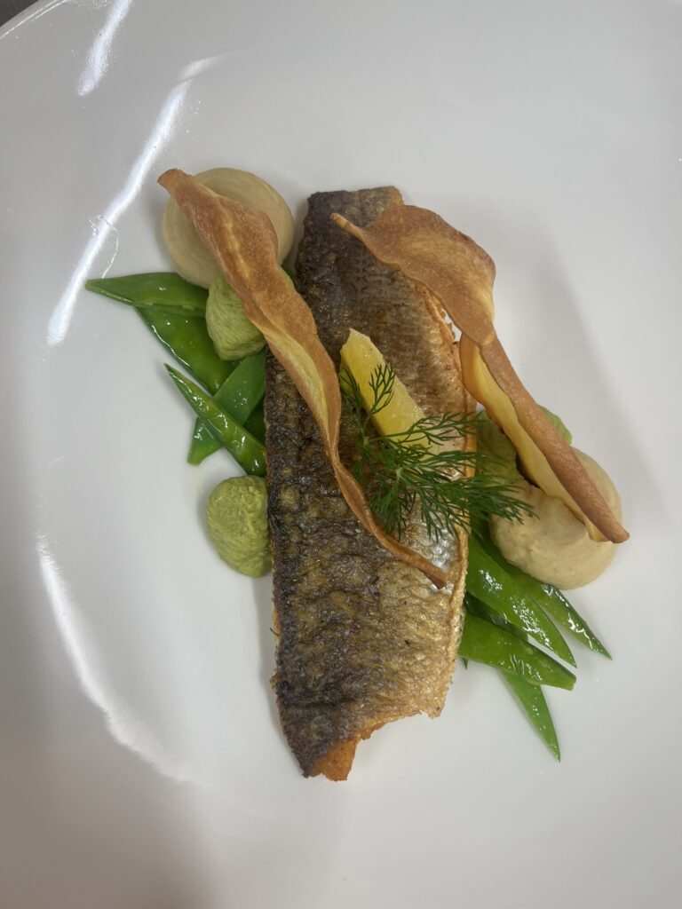 - Wolfsbarsch | Pastinakenpüree | Erbsenschote