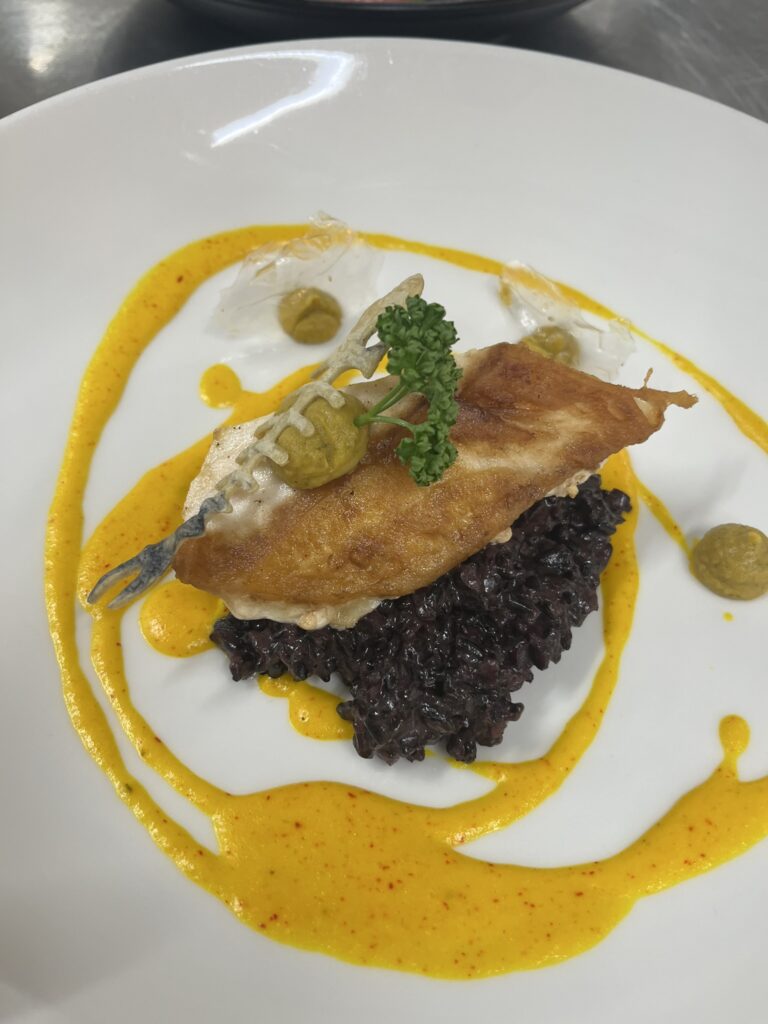 - Butterfisch | schwarzes Risotto | Safransauce