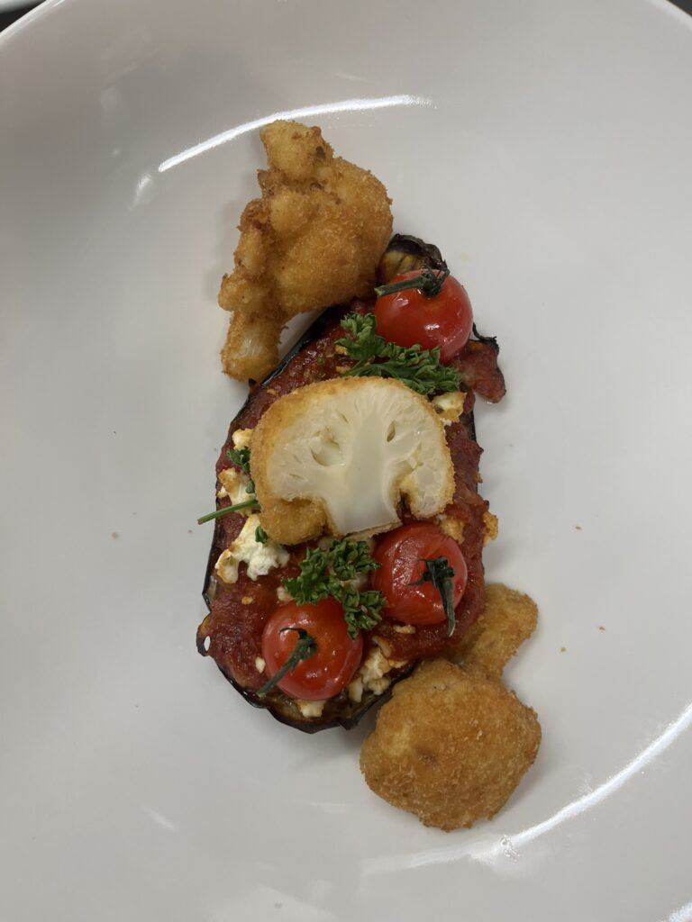 - Gefüllte Aubergine mit Kräuter-Quinoa – Beilage: Ratatouille, Polenta