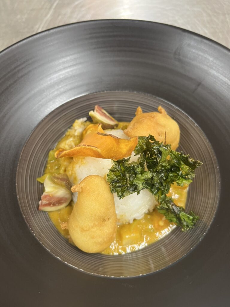 - Kokos-Kürbis-Curry – Beilage: Jasminreis, glasiertes Gemüse
