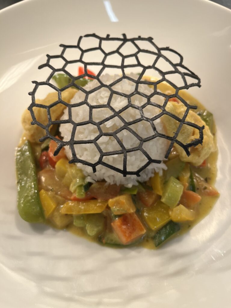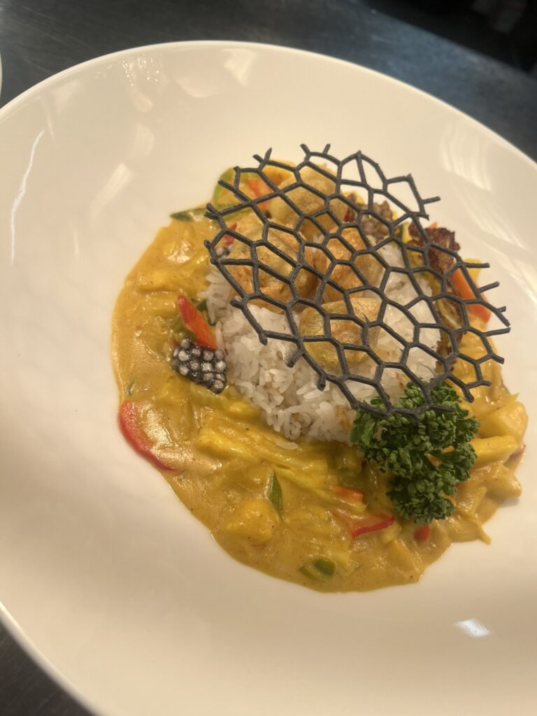- Papaya-Ingwer-Curry auf Jasminreis – Beilage: Polenta, glasiertes Gemüse