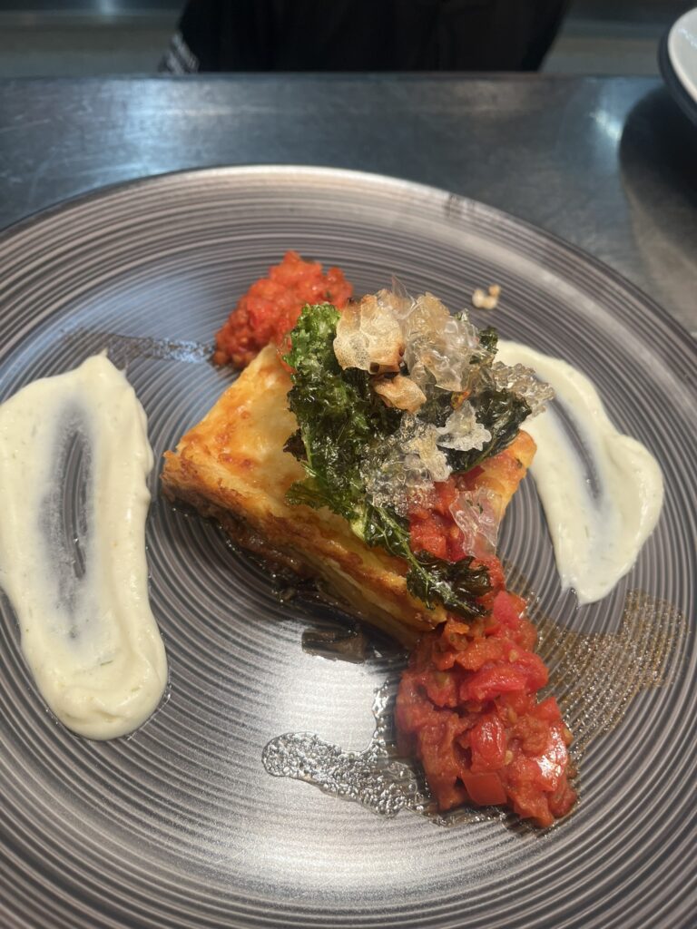 - Mini-Gemüse-Lasagne – Beilage: Polenta, Zuckerschoten