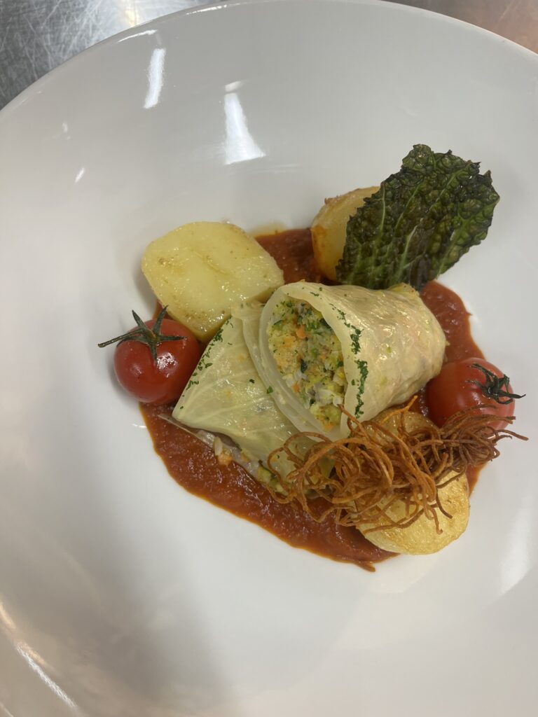 - vegetarische Krautwickel | Kartoffel | Tomaten |