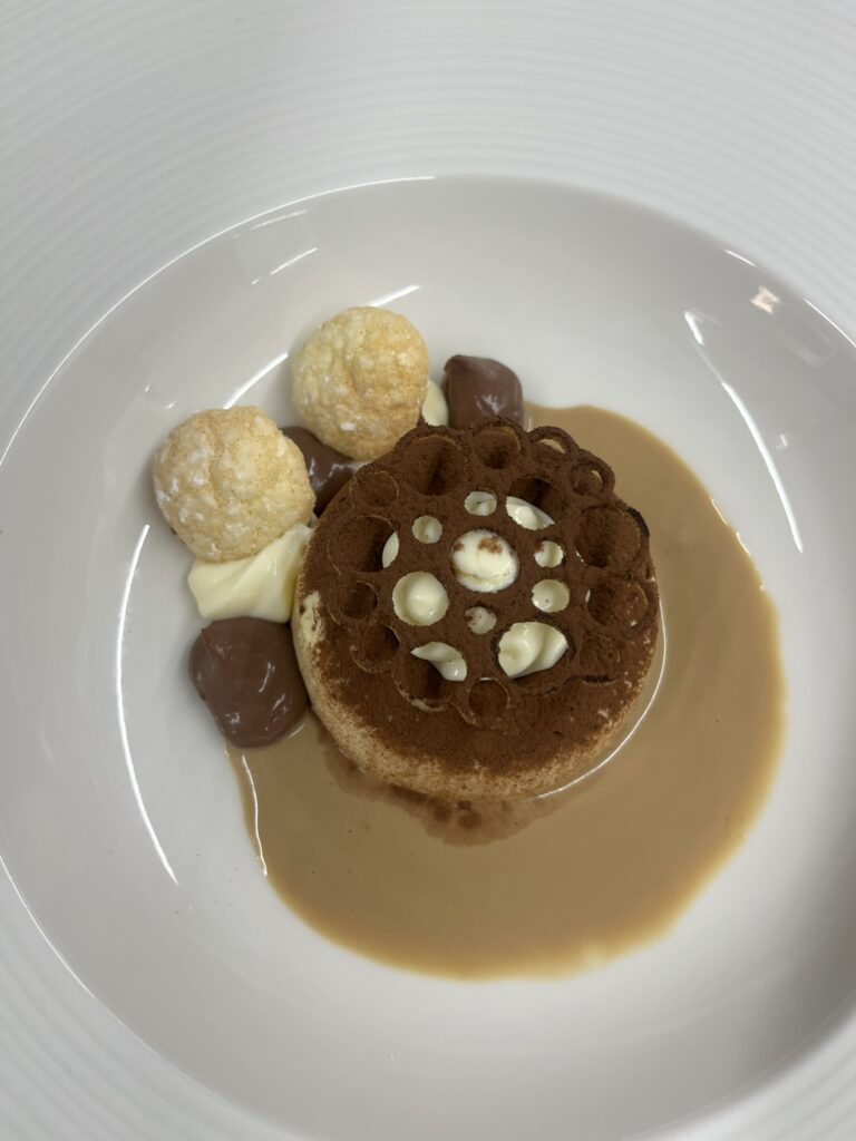 - Gianduja-Mousse – Espresso-Gel, Kakaotuile