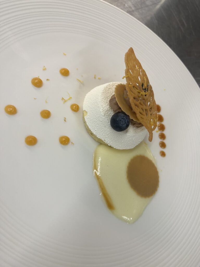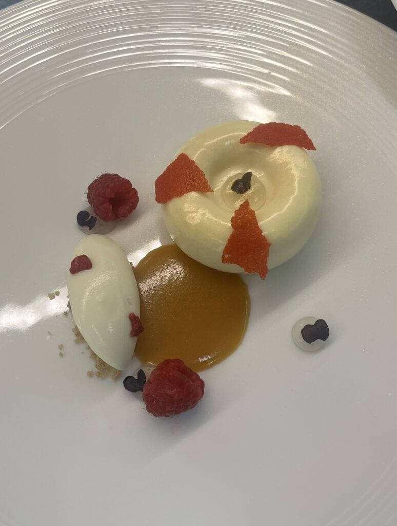- Weiße-Schoko-Mousse – Yuzu-Gel, Kokos