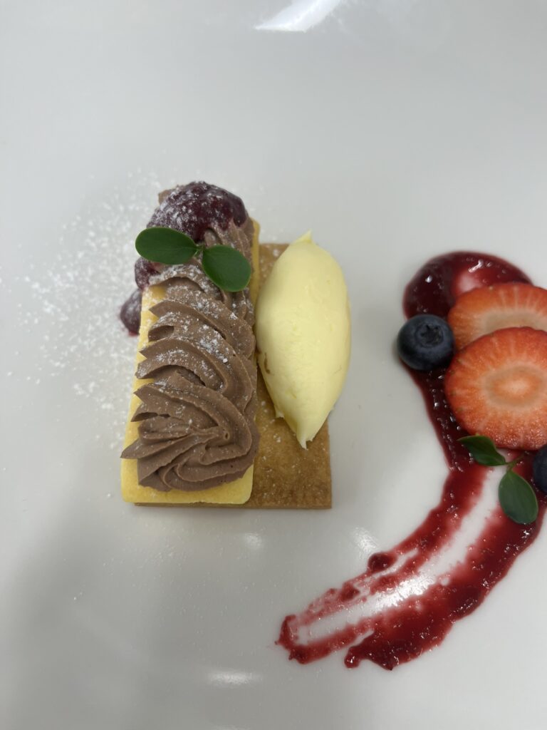 - Mousse: 70 % Schokolade, Sahne, Eigelb