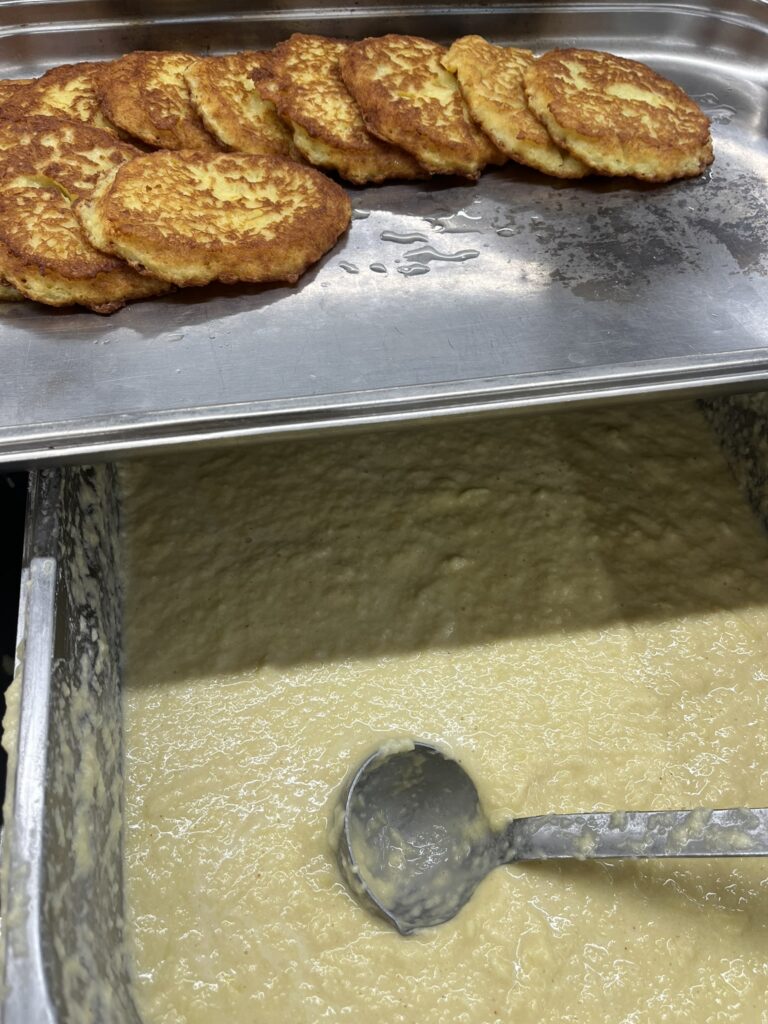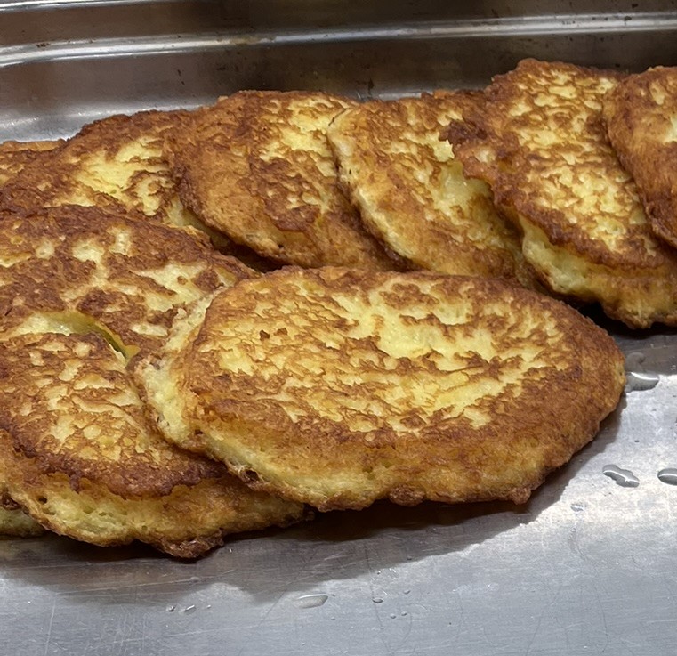 Kartoffel und etwa 10 % Zwiebel mit der Brotscheibe reiben – mit Ei und Mehl zu einem dickflüssigen Teig verarbeiten – mit Salz und Pfeffer würzen – braten ( rezept by Jochen ❤ )